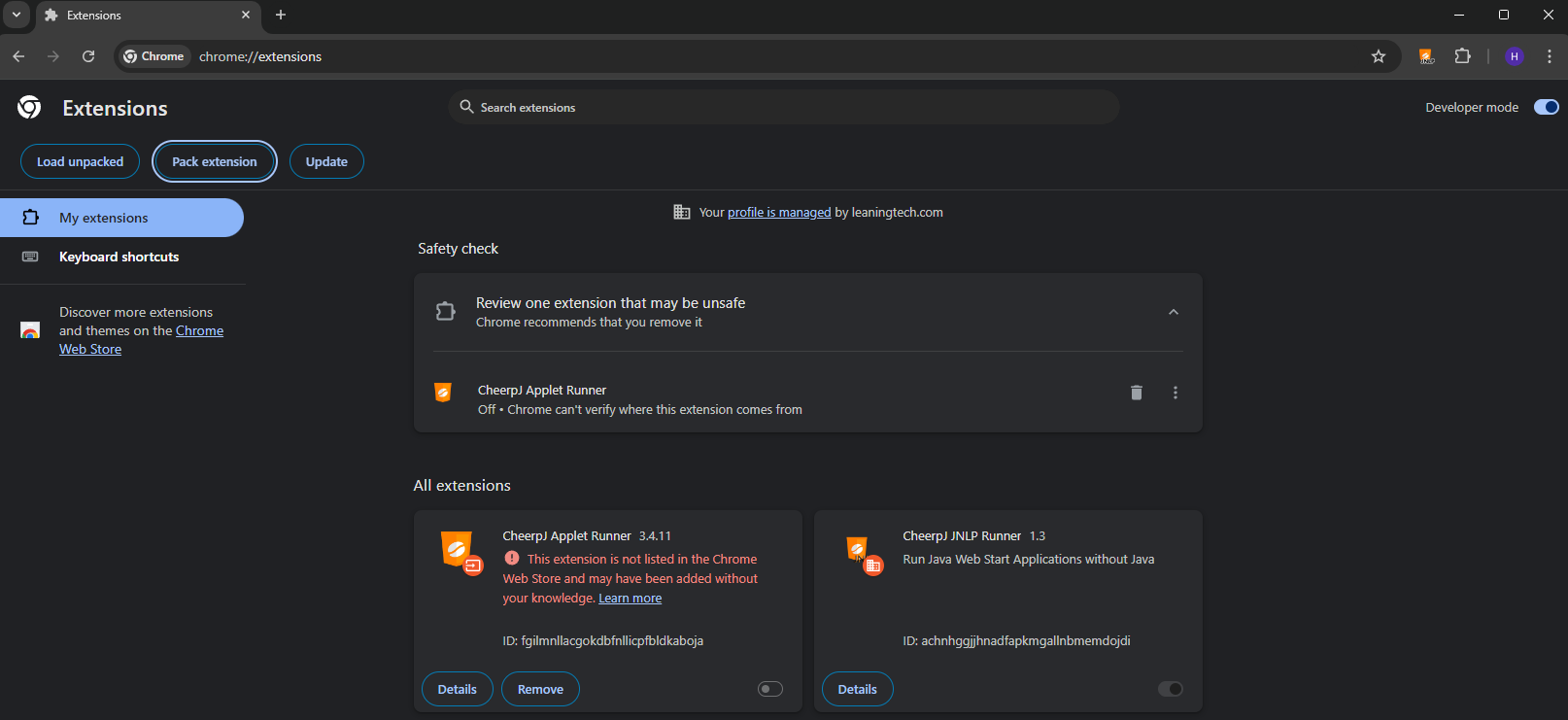 This tutorial will walk you through the steps to pack the CheerpJ Applet Runner extension in Chrome, making it ready for distribution and deployment, particularly useful in enterprise environments like deploying through Group Policy Objects (GPOs).